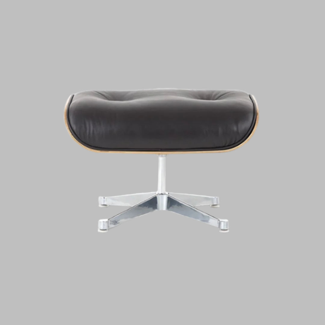 The chair is thoughtfully designed for ultimate relaxation, featuring a reclined posture and swiveling base. The accompanying ottoman provides perfect support for your legs, completing this iconic ensemble. An investment in both style and comfort, our Charles Eames Style Lounge Chair and Ottoman in black offers a sanctuary of relaxation and a statement of enduring design.