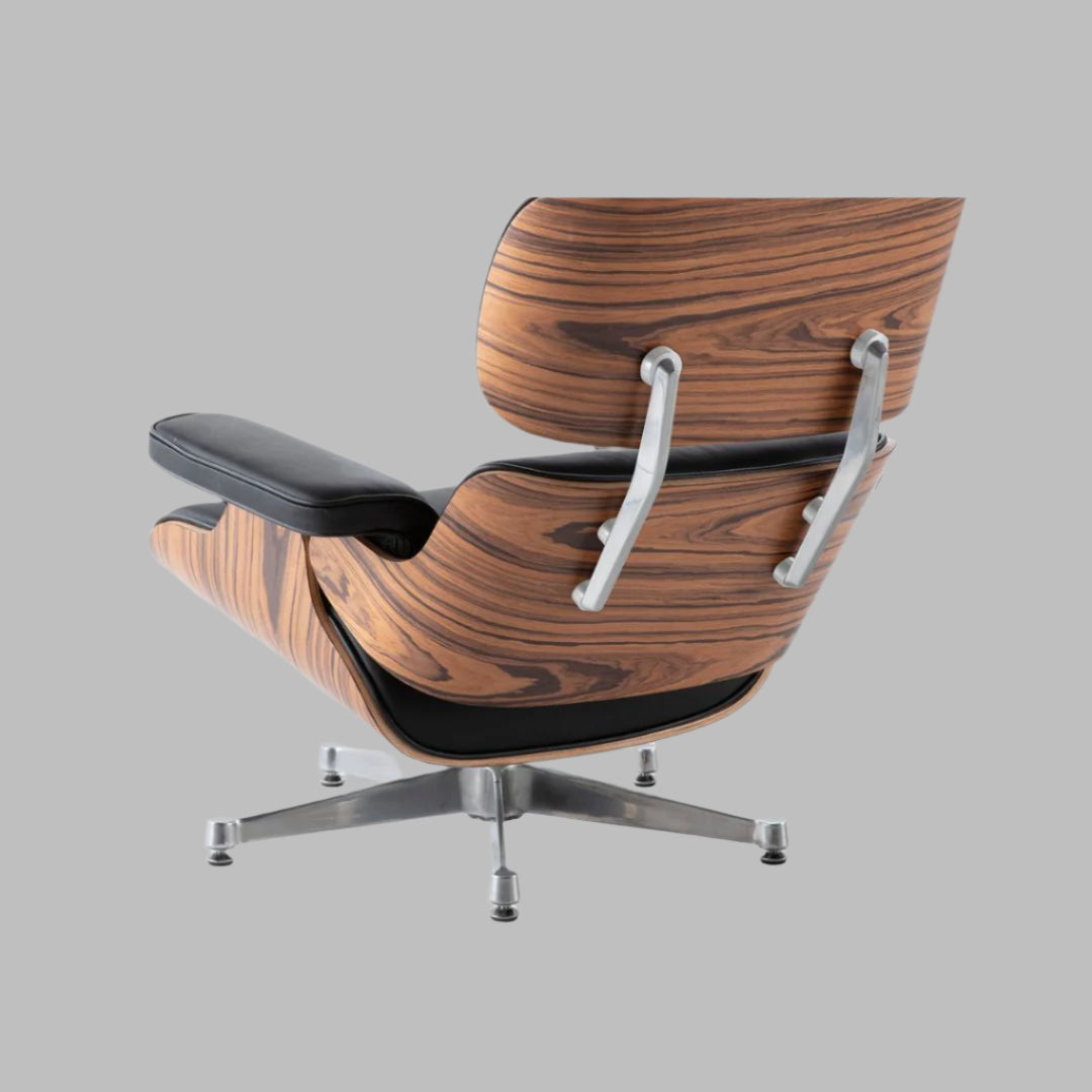 Charles Eames Style Lounge Chair with Ottoman | Black Waxed Leather | Rose Wood