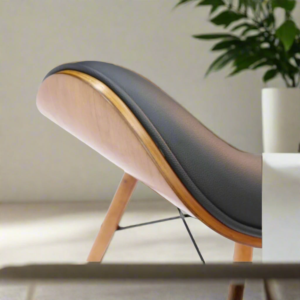Infuse your dining area or home office with the iconic silhouette of our Retro Style Faux Leather Eiffel Dining/Office Chair. This stylish piece seamlessly blends vintage-inspired design with contemporary comfort, featuring a gracefully curved seat upholstered in smooth, easy-care faux leather. The chair's distinctive Eiffel-style base is crafted from sturdy wood with a rich walnut finish, adding a touch of warmth and mid-century flair. Perfect for both everyday dining and focused work sessions, this chair offers a comfortable and supportive seating experience, making it a versatile and eye-catching addition to any modern home. Its clean lines and timeless appeal ensure it will be a cherished piece for years to come.